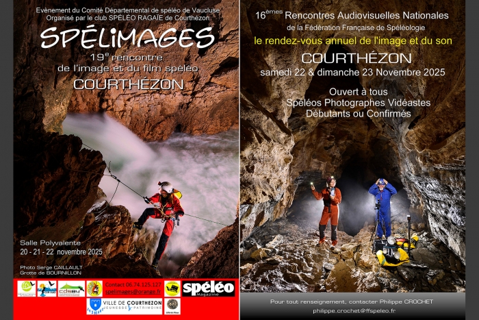 Cette brochure de 64 pages au format A4 italien a été réalisée par Lionel Calvayrac et Matthias Loiseau à l'occasion de l'organisation par la commune de Courniou du 64ème congrès national de la Fédération Française du Tourisme et du Patrimoine Souterrain les 8 et 9 octobre 2025 à la grotte de la Fileuse de verre (anciennement grotte de la Devèze). Nous avons été à l'origine de ce projet et nous avons contribué à sa conception ainsi qu'à sa réalisation, avec l'apport de 37 photos. Quatre séances photo spécifiques ont été organisées début mai dans les grottes de la Fileuse de verre, Roquebleue, la Douch et la Baïssède. Cette brochure témoigne de la volonté de la commune de mettre en valeur son patrimoine souterrain exceptionnel.