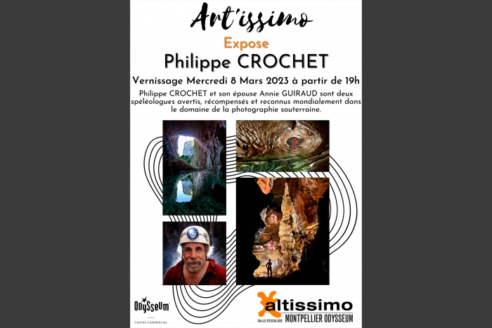 Exposition de 20 photos de spéléo 40x60 cm Salle Pétrarque à Montpellier dans le cadre du festival What a Trip qui s'est déroulé les 28 et 29 Septembre 2019.
