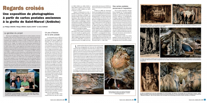 Spelunca n°156 (décembre 2019) : Regards croisés - Une exposition de photographies à partir de cartes postales anciennes à la grotte de Saint-Marcel (Ardèche) (Philippe Crochet, Philippe Drouin, Delphine Dupuy et Annie Guiraud) - Article de 6 pages.