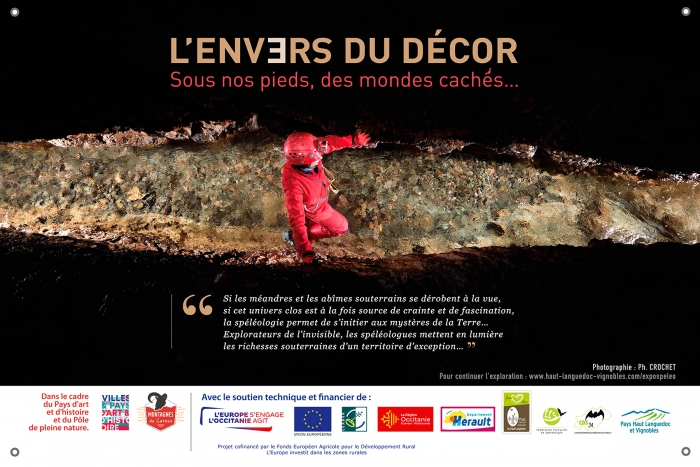 Contribution avec dix photos à l'exposition L'envers du décor installée du 19 mai au 31 octobre 2021 le long de la voie verte Passa Païs, reliant Bédarieux à Mazamet. L'objectif est de faire découvrir aux promeneurs et aux cyclotouristes les merveilles souterraines des cavités de la région. Cette exposition comprend vingt panneaux qui présentent quelques unes des plus belles cavités du territoire.