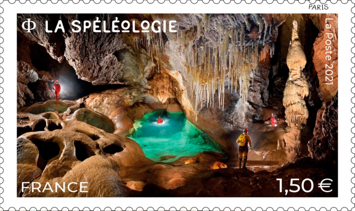 L’initiative de ce timbre revient à Jacques Chabert qui a fait les démarches nécessaires auprès Philaposte (service du Groupe La Poste en charge des timbres de collection). Son idée était que ce timbre sorte au moment du Congrès international de spéléologie de juillet 2021, reporté depuis à 2022. Philaposte a fait un assemblage de quatre photos retenues parmi de nombreuses proposées par Roselyne Sautour qui assurait la supervision du projet. Un excellent travail de composition a été effectué par l'infographiste du projet Stéphanie GHINEA.