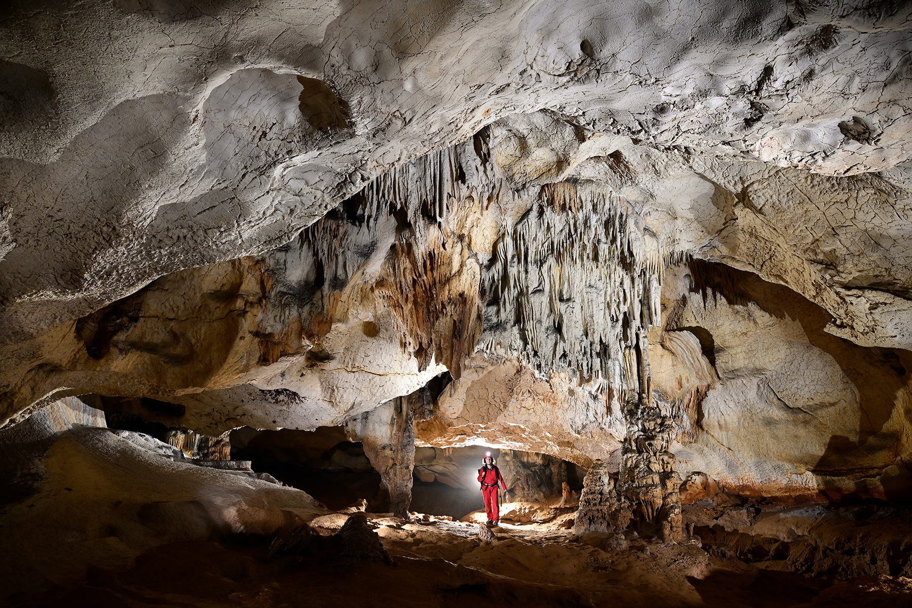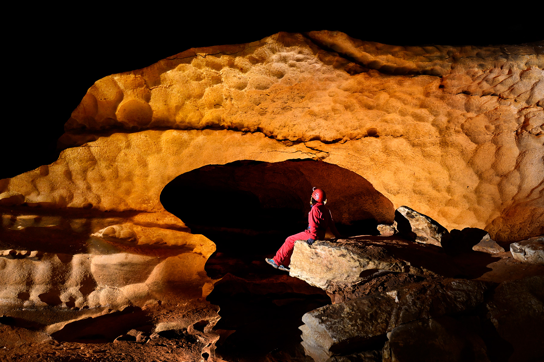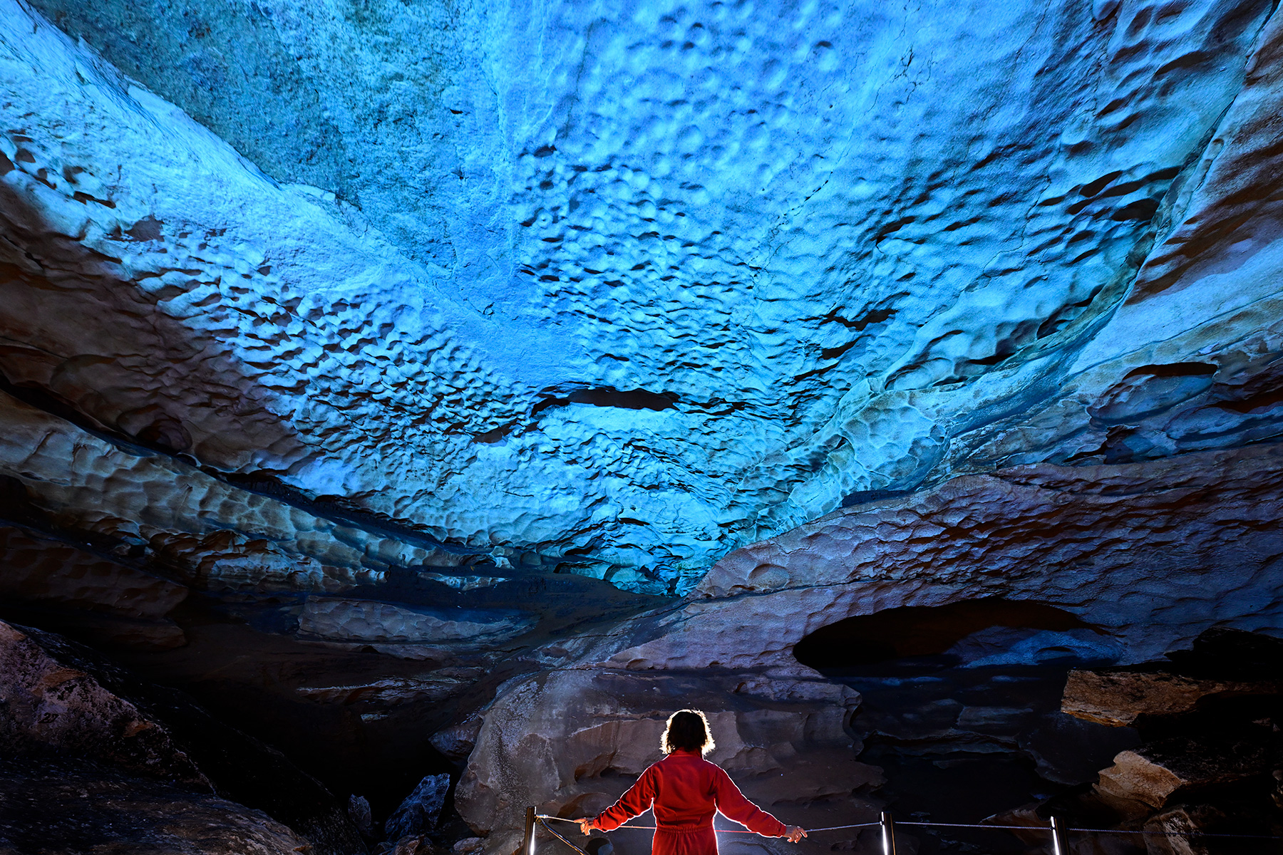 La grotte de Saint Marcel, en Ardèche, est caractérisée par ses vastes galeries aux parois creusées dans un calcaire de couleur claire. Une partie est aménagée pour le tourisme