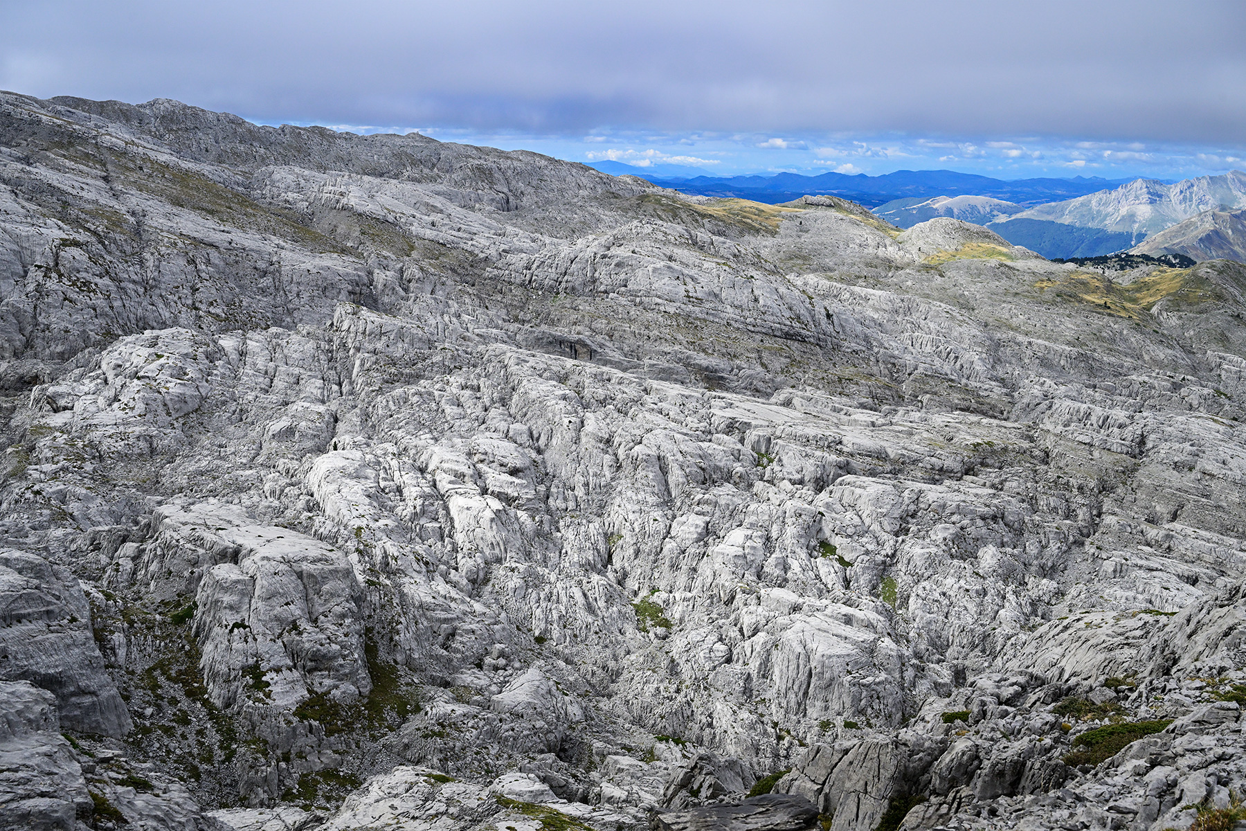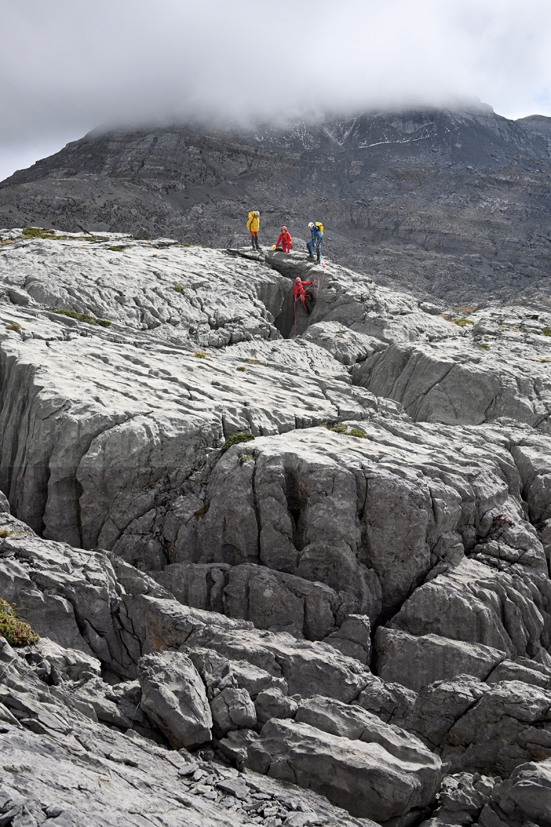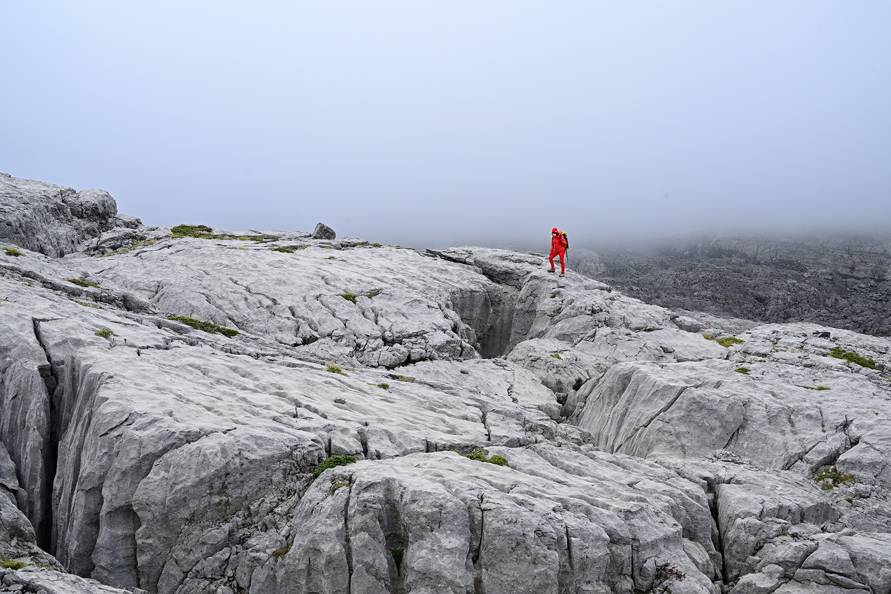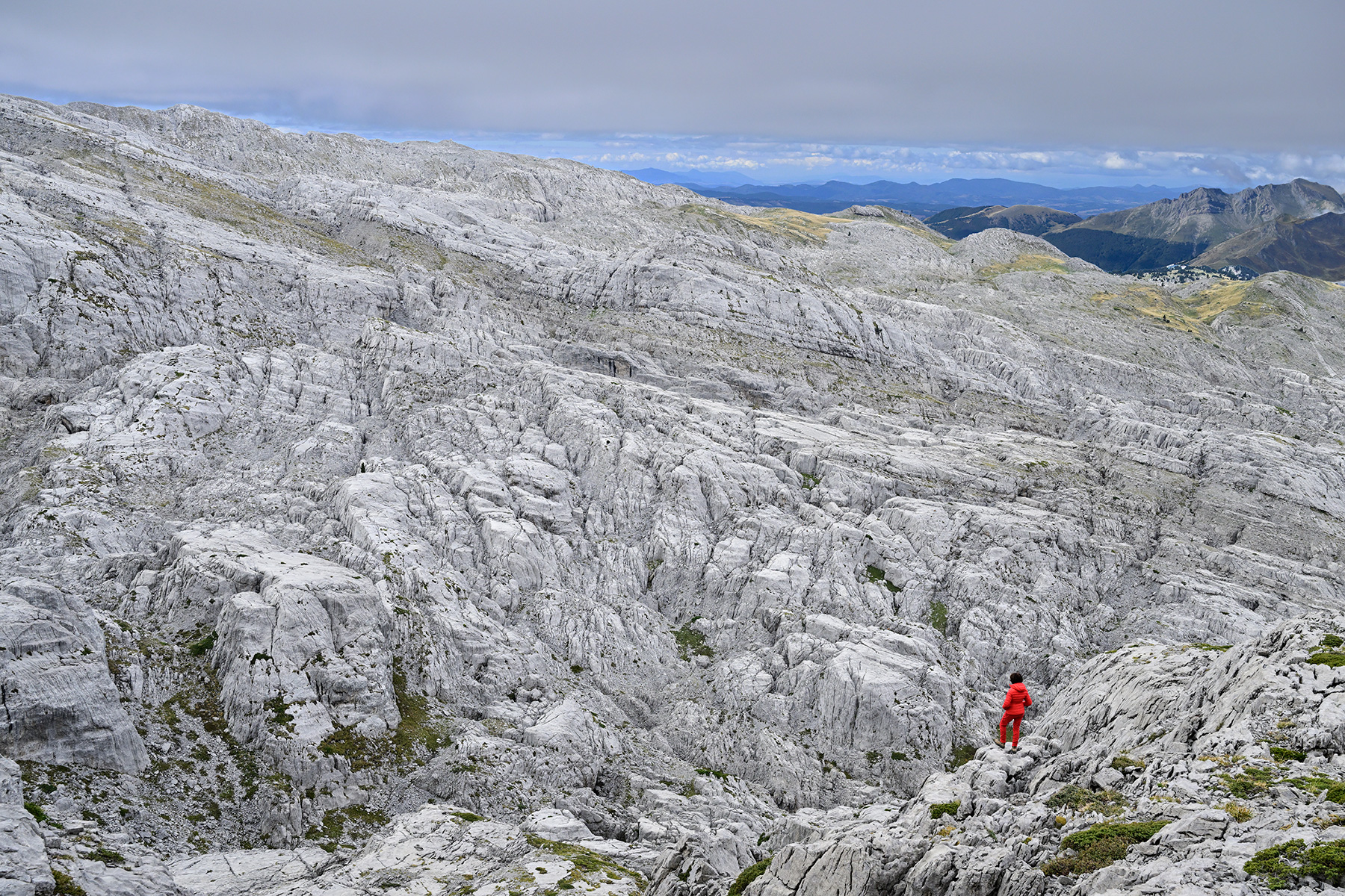 Arres d'Anie (Pierre Saint-Martin, Pyrénées Atlantiques) - Dalles du lapiaz avec personnage