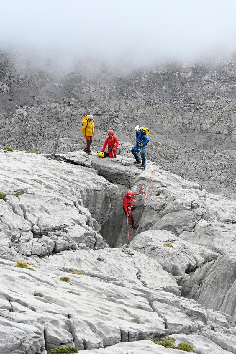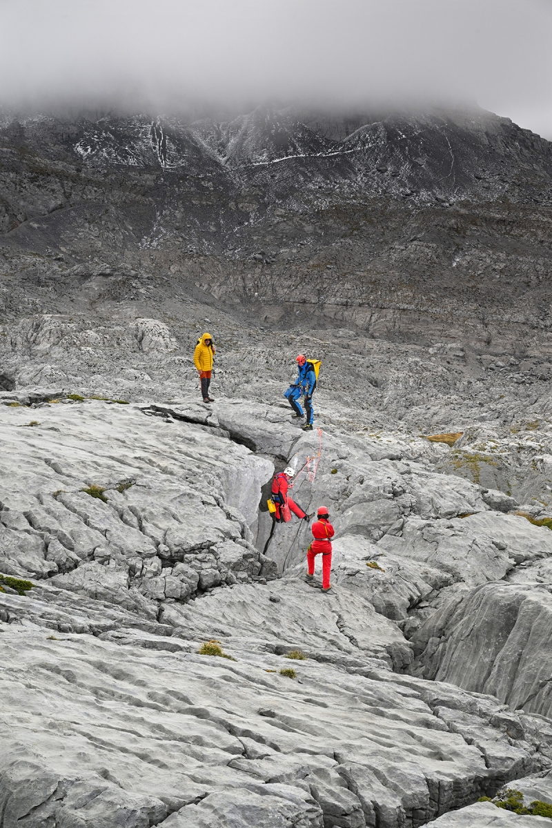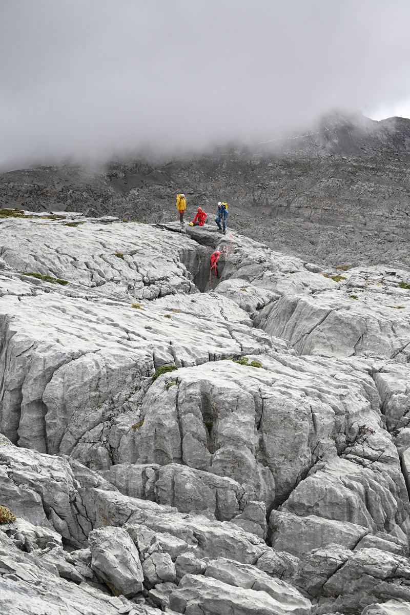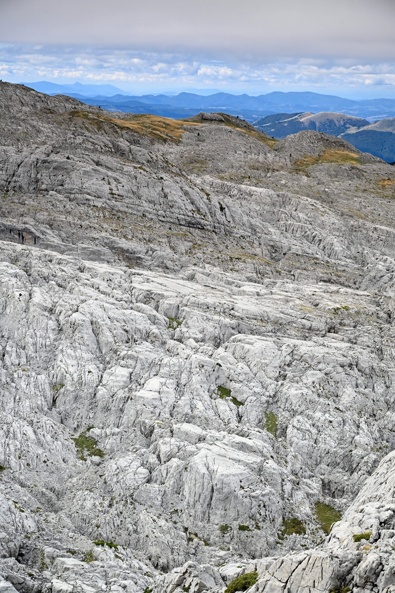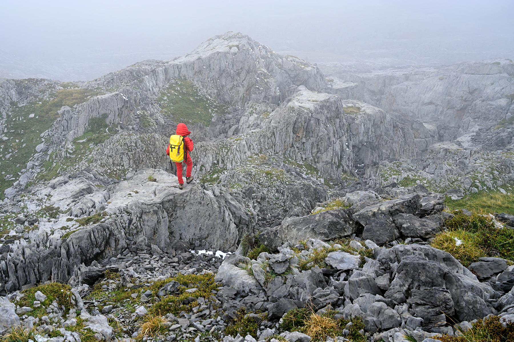 Arres d'Anie (Pierre Saint-Martin, Pyrénées Atlantiques) - Dalles du lapiaz avec personnage