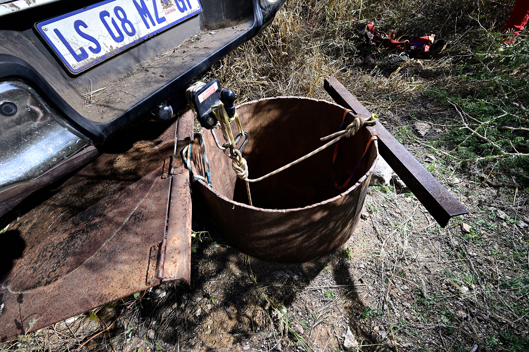 Gecko cave (Botswana) - L'entrée de la cavité se fait par un forage de 20 m, tubé dans sa partie supérieure,...
