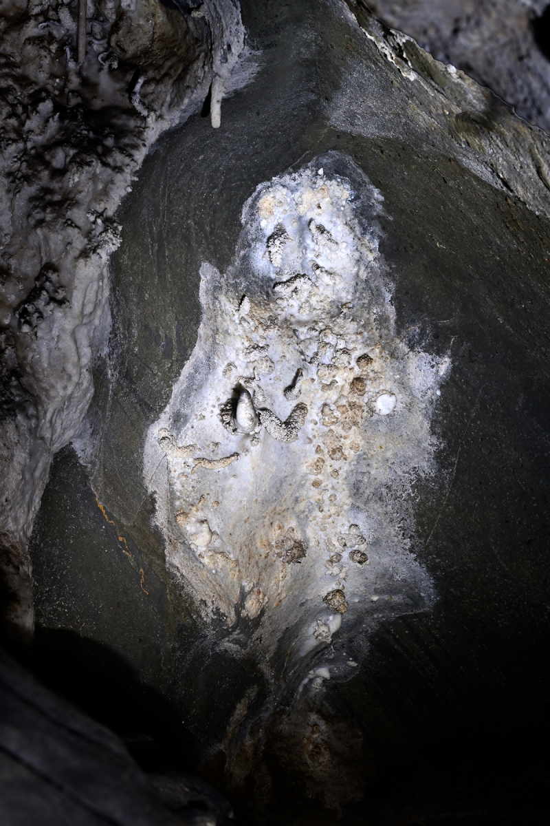 Caverna do Mourro Preto (Sao Paulo, Brésil) - "La foudre" (ligne de concrétions blanches sur une paroi...