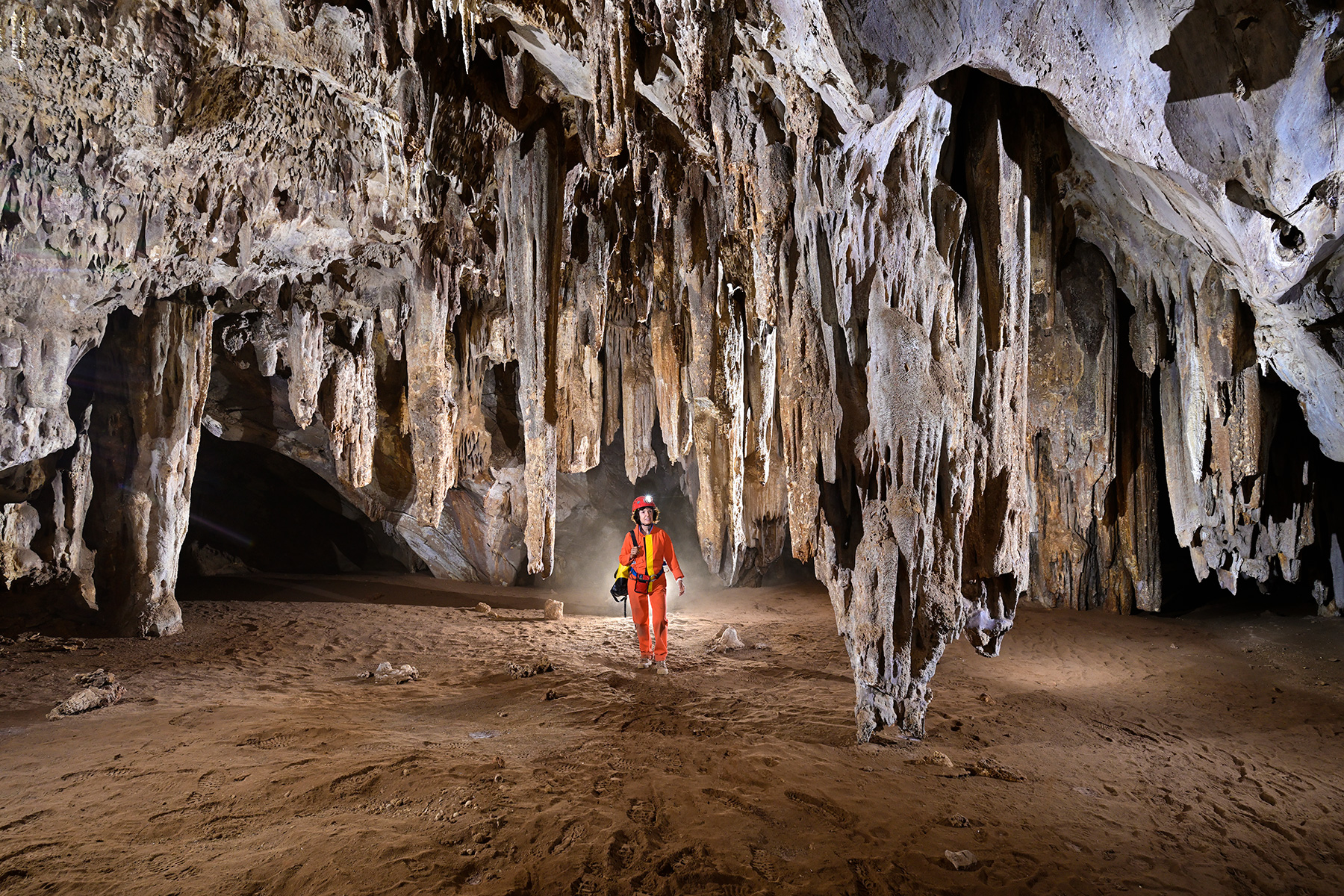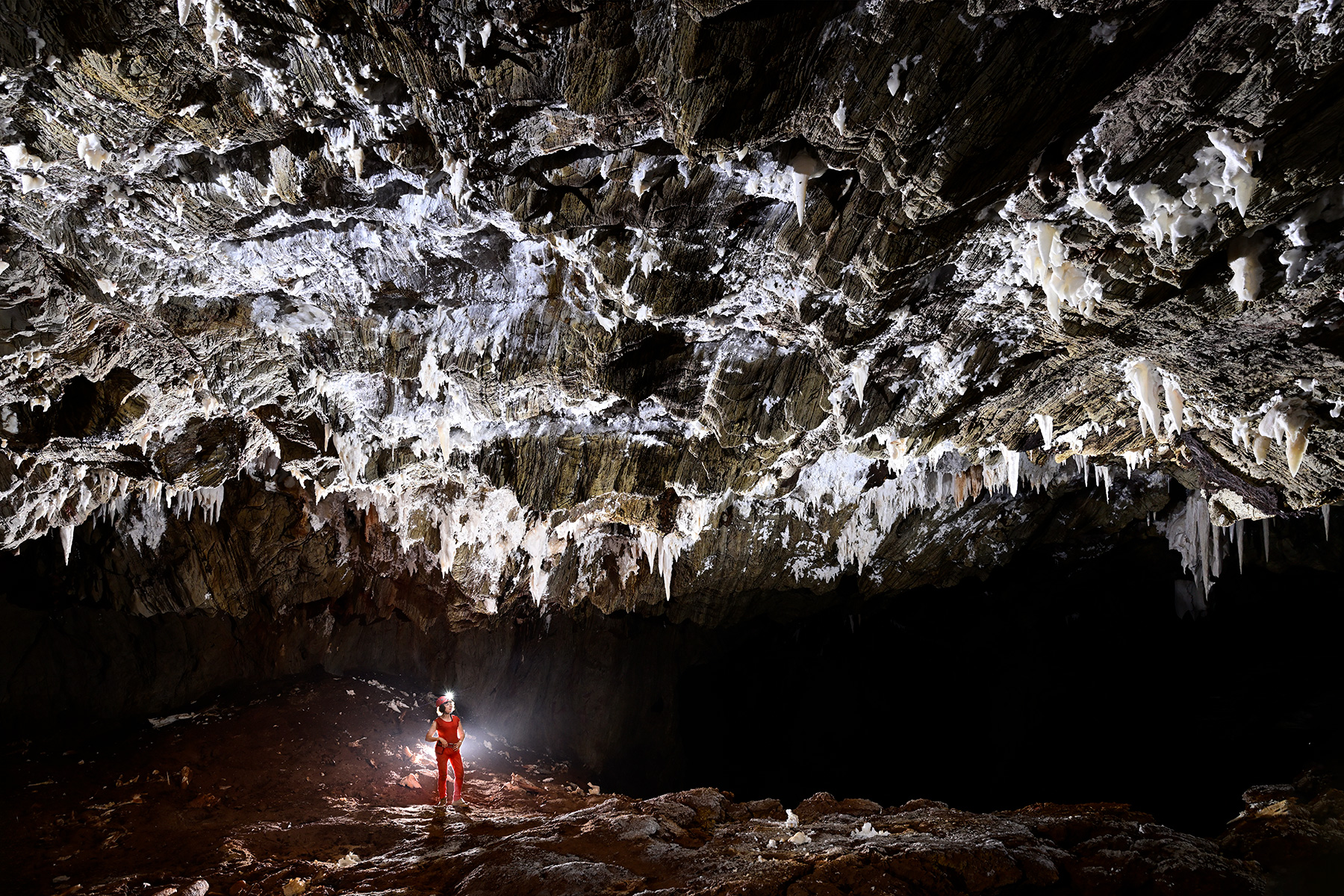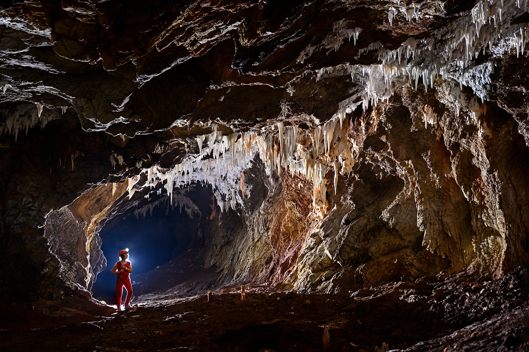 Medvedjak Jama - Salle concrétionnée avec spéléo au milieu