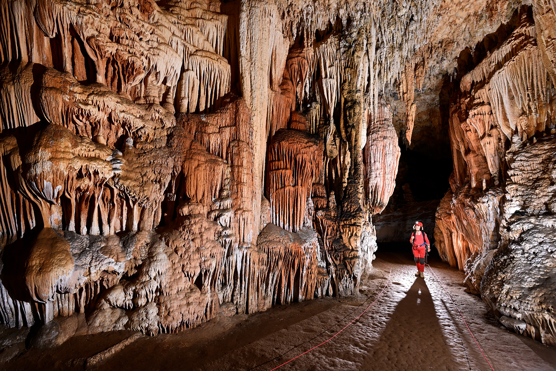 Les concrétions correspondent à des dépôts chimiques de carbonate de calcium (CaCO3) sous forme cristalline. Le dépôt du carbonate de calcium est régi par un ensemble de réactions chimiques complexes et relativement lentes, si bien que le processus de cristallisation est étalé dans le temps. La forme et l'extension des concrétions dépend non seulement de la position des arrivées d'eau (fissures au plafond, écoulements sur les parois ou le plancher des galeries, etc.), mais également de leur débit.